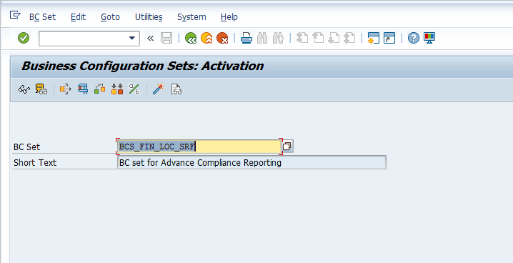 Now activate the BC Set BCS_FIN_LOC_SRF. Execute transaction code SCPR20. This action opens the screen in Figure 3.