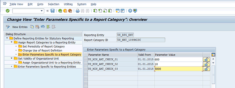 If you click the Enter Parameters Specific to Reporting Entities folder on the left side of Figure 13, you can see the various parameters’ values based on the report category (Figure 14). For example, in Figure 14, the parameters relevant for US_RPG_ENT are shown.