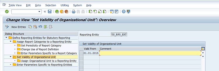 If you click the Set Validity of Organizational Unit folder in the left side of Figure 11, you can see the validity of the reporting entity as shown in Figure 12.