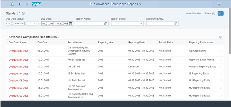 SAP launched SAP S/4HANA advanced compliance reporting for the on-premise version of SAP S/4HANA 1610 in Feature Pack Stack (FPS) 01. SAP S/4HANA for advanced compliance reporting helps you to meet your compliance reporting requirements. The framework consists of a business application and technical or key user applications.
