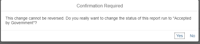 After you file the report to the government manually or electronically to the government website, you can click the Update Submission Status link in Figure 22 or 23. The system then sends a warning as shown in Figure 24.