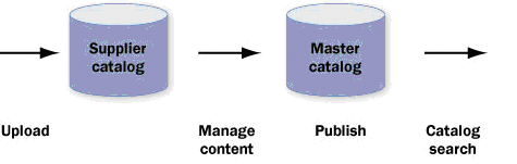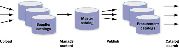 You then map the supplier catalogs' schemas to the master catalog, which is the repository of all items brought into SAP CCM. The master catalog validates the data, approves it if controls segregation is required by the business, and selects it for publishing. The master catalog schema can be different than those of the supplier catalogs (e.g., the master catalog schema could have a warehouse and an external purchases section, each with its own subcategories based on material groups).