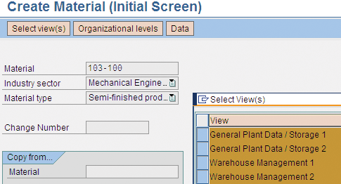 Material master view creation (transaction MM01)