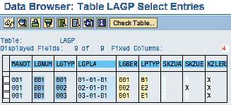 Along with material master data, you also need to create the bin locations in your warehouse to complete the full set of master data required to run your operation in WM. You can check that the system has properly created the bin locations via table LAGP (Figure 4).