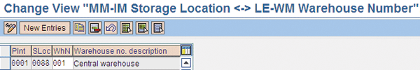 The way the system knows that the SAP IM stock upload for a plant and storage location needs to be reflected in a WM warehouse is by checking the assignment of these components done in customizing. Figure 10 displays the screen where this configuration is done. In this example, you can see that any SAP IM posting taking place for Plant 0001 and Storage Location 0088 is reflected in Warehouse Number 001. You can access it by following IMG menu path SAP Customizing Implementation Guide > Enterprise Structure > Assignment > Logistics Execution > Assign warehouse number to plant/storage location.