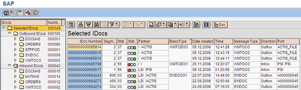 You can use several transactions for this purpose. You can display the IDoc queue via transaction WE02. In Figure 15, you can see the list of IDocs and their status. The support organization should ensure that all the statuses are green in color, which means that they have been correctly posted. An IDoc left in error means that a certain piece of information has not been updated in the SAP system or has not been transmitted to the external system.