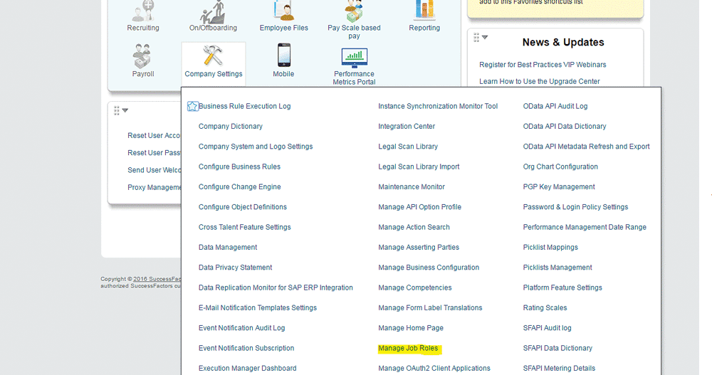 In the Admin Center screen, click the Company Settings option, and then select Manage Job Roles. This opens the screen in Figure 5 where you create the new job role.