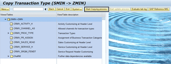 Press Enter to go to the screen in Figure 11. This lists all the affected table entries and tells you the detail while creating the new transaction type. This is just an additional message for your understanding so you can verify you are proceeding correctly. It will be in display mode only. Click the Start Copying process button so your custom transaction type is created, along with all the subcomponents.