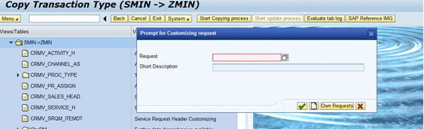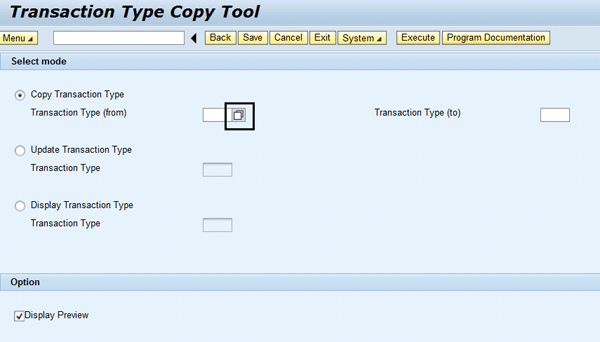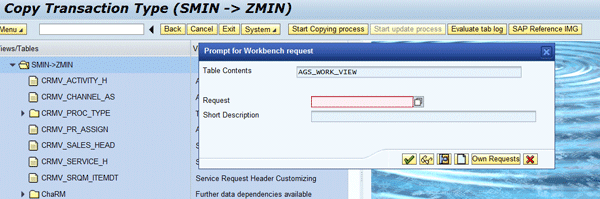 Another window in the Web browser opens with the initial interface for copying the transaction type (Figure 7). Press F4 to select the standard transaction type SMIN.