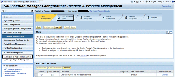SAP Solution Manager 7.1 Incident Management provides a quick, easy way of creating a customer-specific transaction type for incident management via a standard wizard available in SAP Solution Manager 7.1. It reduces the time to implement customized service desk or incident management for any company.