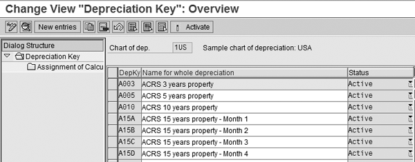 Step 8 (optional). Select a depreciation key to refrain from reduced depreciation. A particular business scenario may require no reduction in depreciation for a particular depreciation key (this would be at the direction of your Asset Management department). Use transaction AFAMA or follow IMG menu path Financial Accounting > Asset AccountÂing > Valuation> Fiscal Year > Shortened Fiscal Year >Â Maintain Depreciation Key (Figure 11).