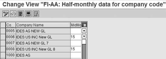 Step 5. Check the Mid-Month indicator. Follow IMG menu path Financial Accounting > Asset Accounting > ValuÂation > Fiscal Year > Use of Half Months in the Company Code (Figure 5).