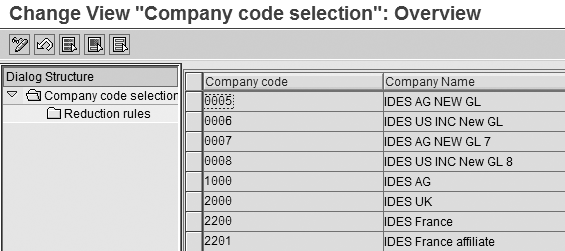 Highlight the company code and double-click on the Reduction rules folder for each affected company code.