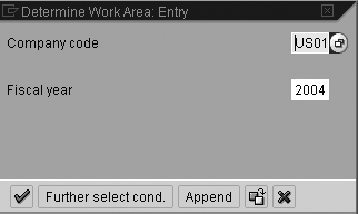 In the pop-up screen that appears, enter the short fiscal year, which is 2004 in my example (Figure 9). Click on the green check mark icon and in the screen that appears, click on the New Entries button.