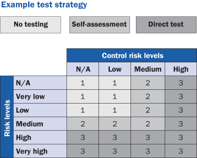 During the materiality analysis, significant account groups are identified and subprocesses and organizations associated with significant account groups are set in scope for your evaluations. A subsequent risk analysis and control risk analysis of in-scope subprocesses concludes which level of evidence is needed to satisfy the regulatory requirements and defines your testing strategy for your subprocesses and controls. Higher risk areas require full tests of control effectiveness and design assessments, whereas low risk areas may only require self-assessments or can be completely omitted from your evaluations. Not all these instruments have to be applied during scoping. For example, instead of an account group-based materiality analysis, privileged users can set organizations and subprocesses in scope manually. This allows for applying the remaining scoping instruments to non-financial compliance initiatives where account groups aren’t relevant.