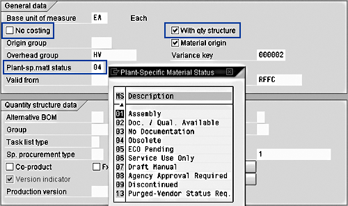 The material status option may involve more work in the initial setup and initial maintenance of master data. However, the number of costing run messages is soon reduced substantially, and as a result, so is ongoing maintenance.