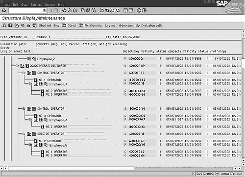 You can use a standard org structure display report (S_AHR_61016528 - Structure Display/Maintenance) to report on job assignments for employees with multiple jobs. See Figure 8. You need to define a special evaluation path that covers the relationships defined so far.