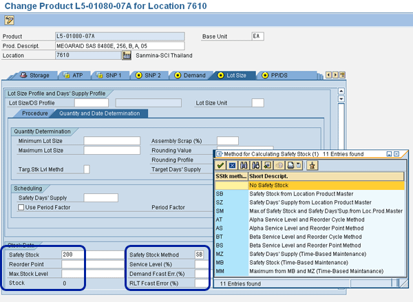 The fixed quantity method requires a clear understanding of the items and the locations where your organization intends to manage safety stock. Then, maintenance of safety stock numbers at that item location level needs to be carried out either by supply chain organizations or the master data team. In stand-alone SAP APO implementations, you can maintain the safety stock values at the product location level. In implementations with SAP R/3, you can maintain the values in R/3 and bring those to an SAP APO product location using Core Interface (CIF).