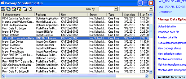 Select Manage Data > View package status in SAP BusinessObjects Planning and Consolidation to see the SSIS package status in the data manager (Figure 15).