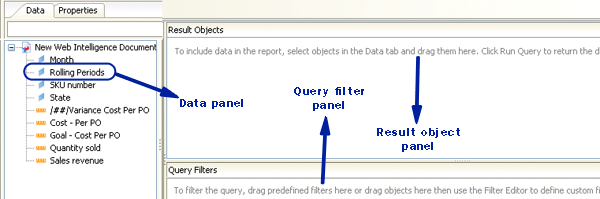 Step 1. Create the SAP BusinessObjects Web Intelligence report on top of an SAP BusinessObjects Universe built on a BEx Query. You get the structure Rolling Periods displayed as a dimension in the data panel on the left side (Figure 2).