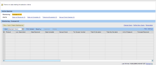As Figure 1 shows, SAP APO delivers the first scenarios supported by Web Dynpro for ABAP, a user interface extensively used in SAP TM. You reach Figure 1 via transaction /SAPAPO/CFM_POWL or menu path Demand Planning > Planning > Customer Forecast Management > Customer Forecast Management. Web Dynpro for ABAP provides SAP standard technology for programming screens that can be seen through a Web browser or with the new SAP user interface, SAP NetWeaver Business Client.