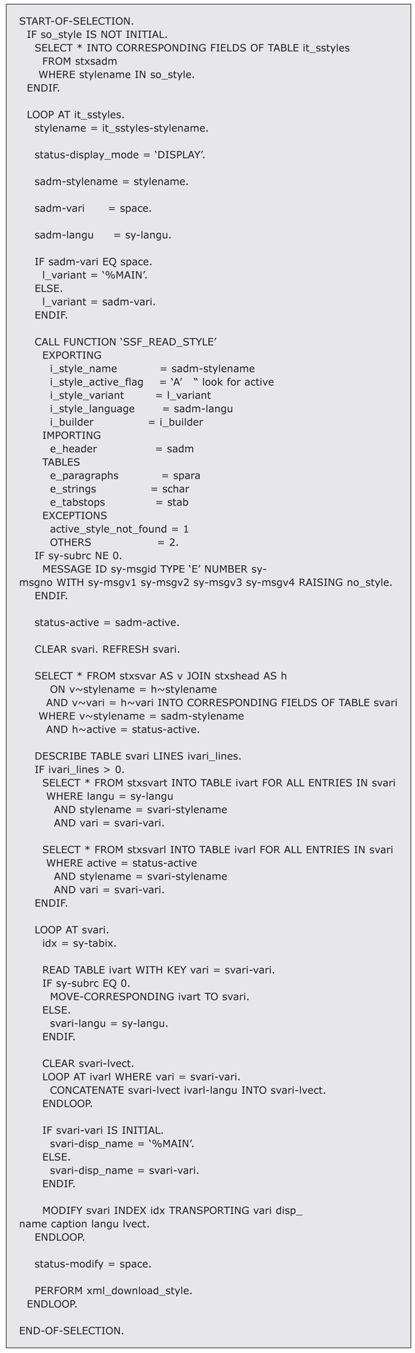 Use ABAP code to create a utility that allows you to download standard or custom SAP Smart Styles. With it, you’ll be able to download all SAP Smart Styles or a selection that you have defined, eliminating a normally laborious process. Key Concept SAP Smart Styles are used for formatting of printing documents that companies…