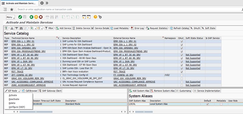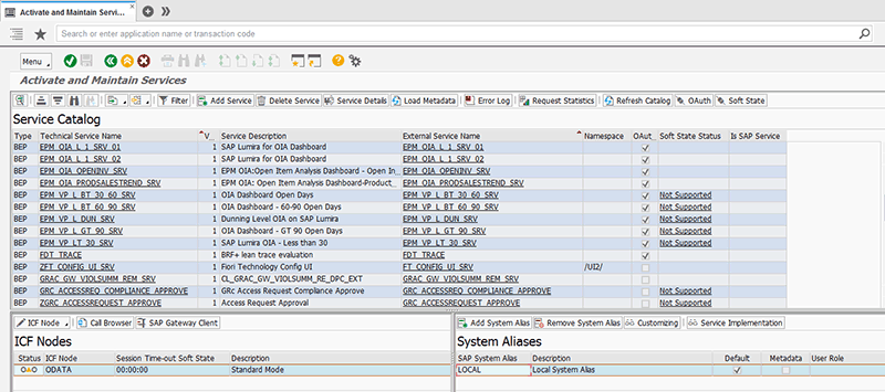 - Activation of Open Data Protocol (OData) services