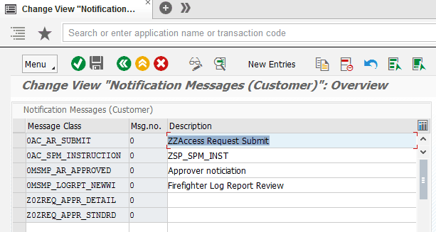 To map the message class to the custom document created initially, navigate to the IMG and follow menu path SAP Reference IMG > SAP Customizing Implementation Guide > Governance, Risk and Compliance > General Settings > Workflow > Maintain Custom Notification Messages.