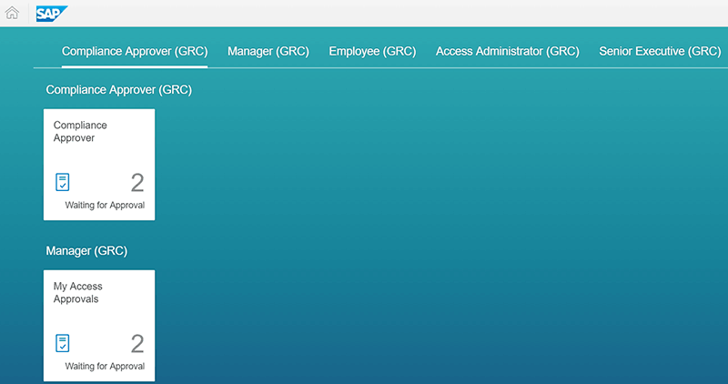 Click a tile, for example, Compliance Approver (GRC), to launch the capability of the application.