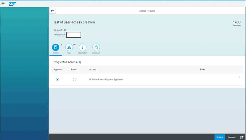 The initial screen to approve or reject an acccess request