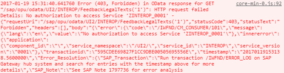Sample SAP Gateway error log