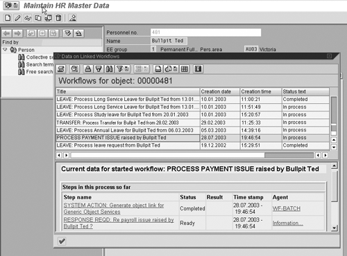 Wouldn’t it be great if there were a tool you could use to see all the workflows related to a particular employee? Well, there is. It’s called generic objects services (GOS). It’s available as of R/3 Release 4.0. The phone rings. Again. It’s Ted Bullpit. “I put in a leave request last week, but I…