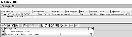 The code in Figure 5 loops through all data into an internal table if the division is not equal to 10. If this occurs, an error message is sent to the error log global table. The system then displays the error message in the monitor.