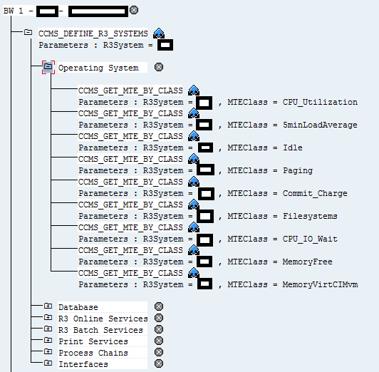 For example, for Operating System, set up the following rules node using the CCMS_GET_MTE_BY_CLASS rule. Note that the system ID is always the default in this because it is ruled by the header class already defined in CCMS_DEFINE_R3_SYSTEM.