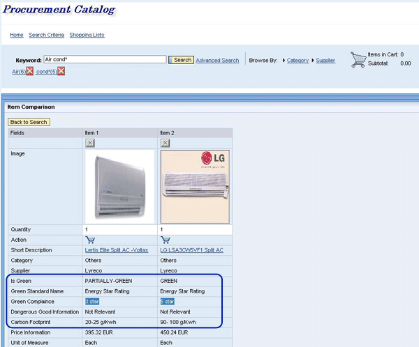 Development mock-up of SAP Sourcing product catalog, box highlight added for emphasis (source: SAP Sustainability EAC)