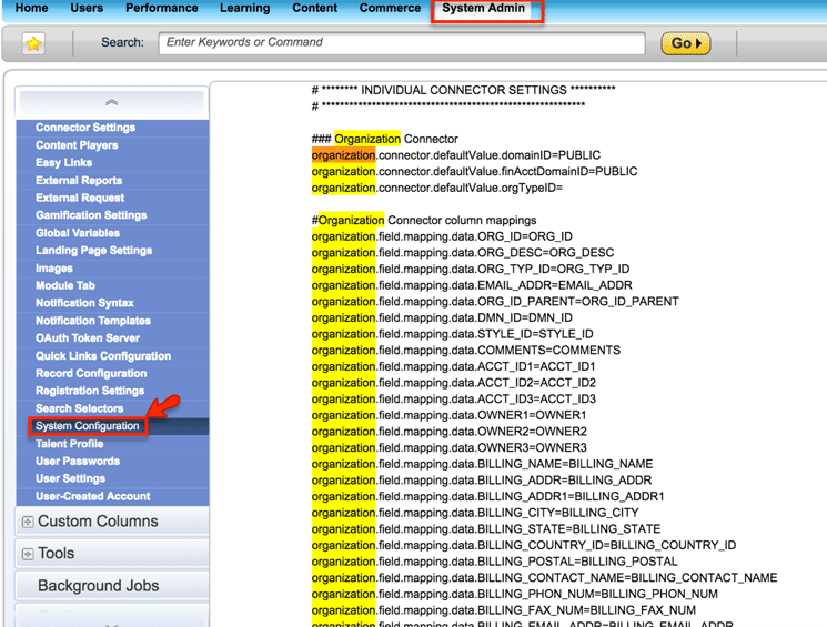Administrators need to have Edit System Configuration permission in the SAP SuccessFactors Learning system to edit the connector configuration file as shown in Figure 4.