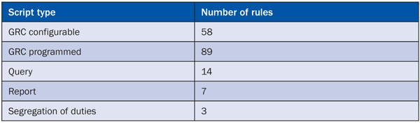 SAP BusinessObjects Process Control 3.0 delivers more than 170 rules including rule criteria as well as rule scripts (Table 1). It also provides the required control scripts with the RTA. You can find a detailed documentation of these rules and rule scripts in SAP Note 1314345.