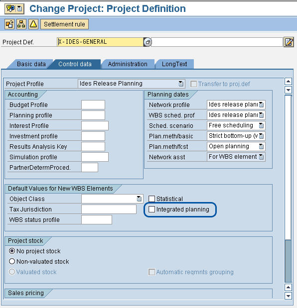 2. Use transaction CJ01 or CJ02 and set integrated planning in the project definition by selecting the Integrated planning check box (Figure 2).