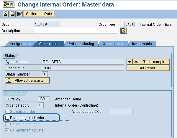 3. Use transaction KO01 or KO02 to set integrated planning in the order type by selecting the Plan-integrated order check box (Figure 3).