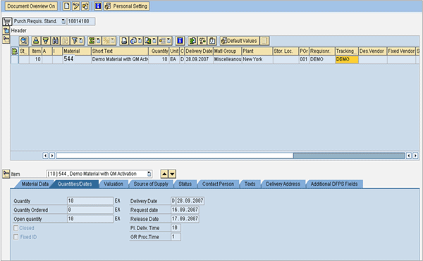 Step 1. The purchase requisition has been created for the inventory managed part (Figure 12). These requisitions can be created manually or automatically through material requirements planning (MRP).