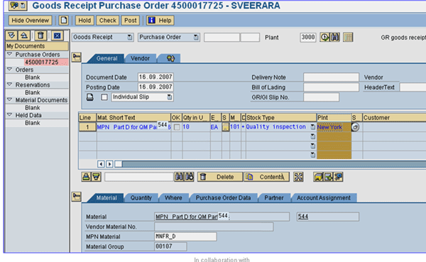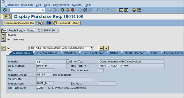 In some industries such as bio-tech, SAP Quality Management (SAP QM) is activated to perform inspections and pass or fail inspection lots. The MPN can be used in conjunction with SAP QM. The following steps highlight the key differences in terms of the steps that need to be carried out in addition to all the previous steps in the article.