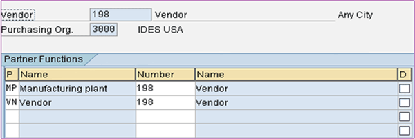 Manufacturer vendor partner function MP assigned to vendor