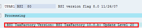 Once you click the log button, you need to navigate to function UPAR1, which should have a comment to view the BSI version flag as seen in Figure 2. Double-click this variable (highlighted in the figure) and it displays the TaxFactory version and update level. You can see in Figure 3 that this shows TaxFactory 10.0.b and Update level 20 (the TUB level).