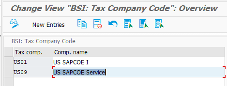 This opens the screen shown in Figure 13 where you now need to create the same tax companies in BSI that you created earlier in Figure 8. Enter the new tax company code and the appropriate details; the tax company code should match the one created in Figure 8 earlier.