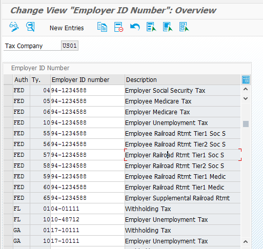 Lastly, select the activity Define federal/state/local employer ID number (back in the screen in Figure 7) and assign the appropriate tax authority and tax type the correct employer ID number for the respective tax company (Figure 10).