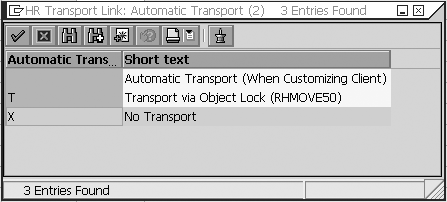 The first row in Figure 2 controls the type of transport connection you wish to use. Three connections types exist: no automatic transport connection (X), automatic transport connection (blank), and transport using object lock (T). To display the connection types, click on the choose from pick list