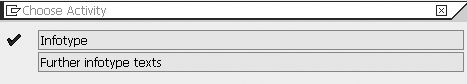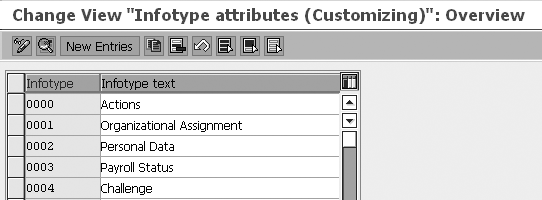 To resolve this issue, you need to delete infotype 0122 from tables T582A and T582L to synchronize the settings of your related infotype tables. First, delete the entry for infotype 0122 from table T582A. Enter the transaction S_AHR_61011213 or follow IMG menu path Personnel Management>Personnel Administration>Customizing Procedures> Infotypes>Infotypes. Click on the execute icon to see the screen shown in Figure 6.