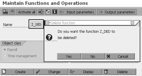 Enter your uncompleted customized function (e.g., Z_DED) in the Name field and click on the Delete button. You’ll see the screen in Figure 6. Click on the Yes button in the confirmation window.