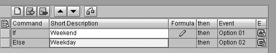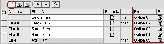 After adding these rows, enter a description for each and assign a different event option for each row using the drop- down menu. In this menu, you can also assign an error event. If you do so, it causes the entire process chain to error. In this example, you do not want your process chain to report an error because all possible system times have been accounted for, and there is no system time that should cause the chain to fail. Therefore, you do not need to assign the error event option.