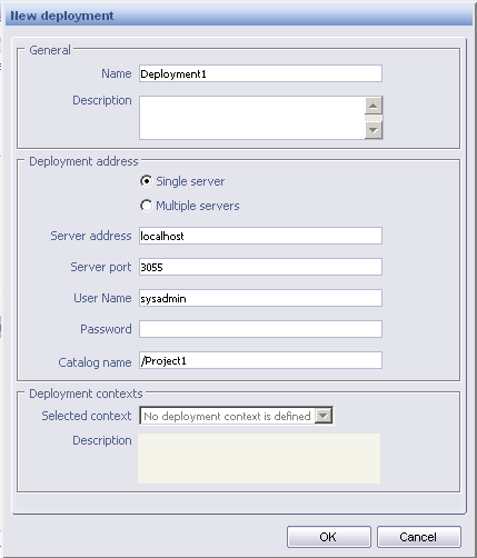 Step 1. Enter a new name for the deployment. Then enter the NW_DESIGNER credentials for the User Name and Password that you created during the installation process.
